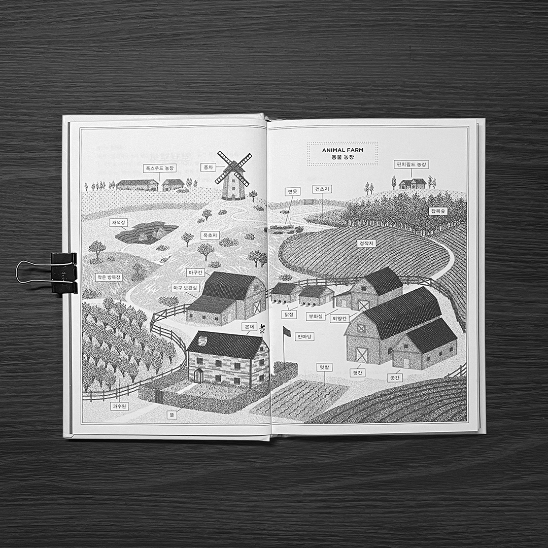현암사에서 출판한 조지오웰 소설 전집 중 <동물농장>과 <1984>의 표지와 내지 작업을 진행했습니다.